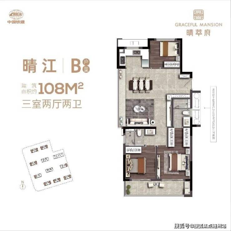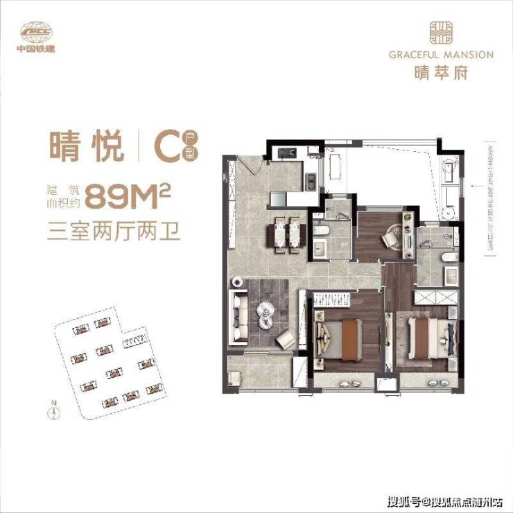 目前,中国铁建·晴萃府推出的建面约89㎡三房两厅两卫和128㎡四房两厅两卫户型,以成长型设计理念满足不同家庭阶段需求。89㎡精致三房实现空间零浪费,明厨明卫设计提升舒适感;128㎡豪华四房配备双开间阳台,视野开阔且功能分区灵活。