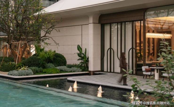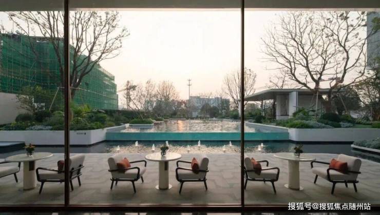 步入后场,空间节奏由艺廊的流动曲线转向水平向的静谧舒展。一方镜面泳池作为视觉与体验的锚点,将天空、光影与建筑轮廓倒映其中,以物理边界的消弭换取意境上的无界延伸。泳池与紧邻的中央公园在视觉上形成连续性,使有限场地获得景观与空间的双重释放,实现从“造景”到“借景”的自然转译。