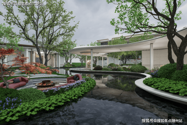潮映杭园的园林设计是对西湖园林意境的现代诠释与升华。设计团队汲取西湖造园灵感,将虎跑泉的静谧、柳浪闻莺的自然、植物园的绿意与太子湾公园的缤纷融为一体,打造“五幕十景”的沉浸式游园体验。