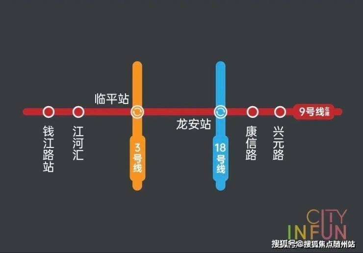项目横跨地铁9号线兴元路站(在建)、康信路站(在建)两大站点,以轨道打破壁垒,一条地铁直达钱江新城、城东新城、滨江、西湖等高能区域,更高效的日常通勤外,还能享受到一脉市心的生活配套。