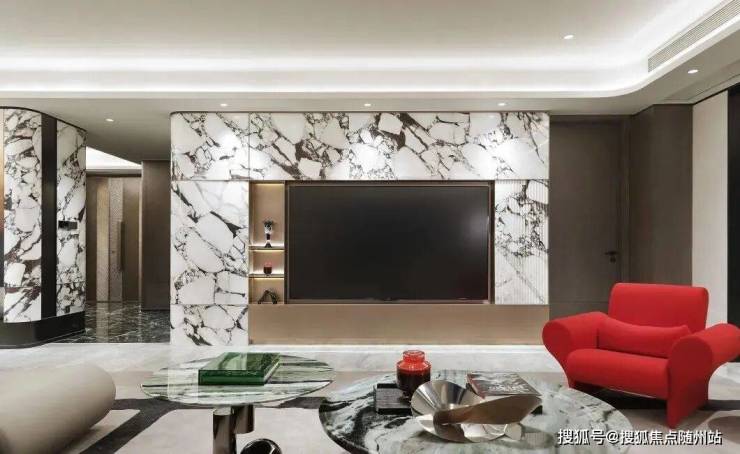 步入近5米层高的单元大堂起,就无时无刻不感受高门华屋的气势。近4米高的大片玉石、瓦楞形的米色石材、细节丰盈的弧形倒角……不同材质和肌理,碰撞出精致优雅的城市精神。执笔的新锐团队TCD²,之前代表作正是上海翠湖天地。