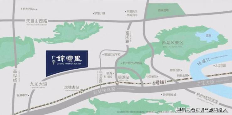 轨道交通:广宇锦云里在轨道交通方面具有明显优势。项目距离杭州地铁 6 号线桂花西路站约 1.5 公里,乘坐地铁可快速直达杭州主城,与杭州其他地铁线路换乘也十分便捷,轻松实现 “同城生活”。地铁 6 号线的开通,极大地缩短了富阳与杭州主城的距离,让业主的通勤和出行更加高效、舒适。