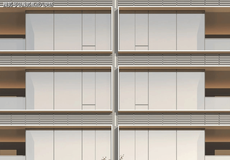 高层外立面,创新性将横向铝材、均釉陶砖、玻璃、石材等材质相结合,很有层次感和艺术张力,显得又美又贵。