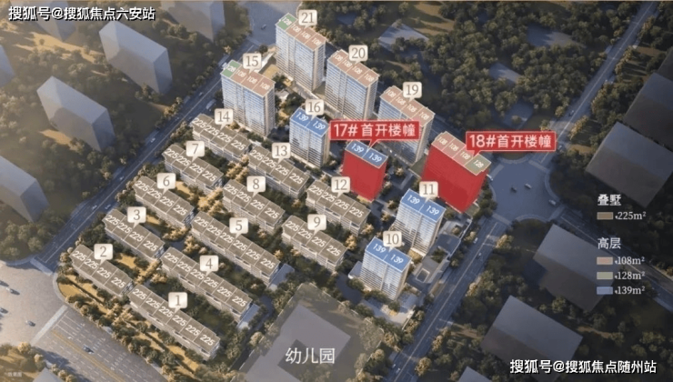 项目以1.7超低容积率打造21栋6-17层低密建筑群,包含9幢高层(108-139㎡)与12幢类独栋叠墅(225㎡),仅设582户,形成“地铁上盖+低密墅区”的稀缺组合。