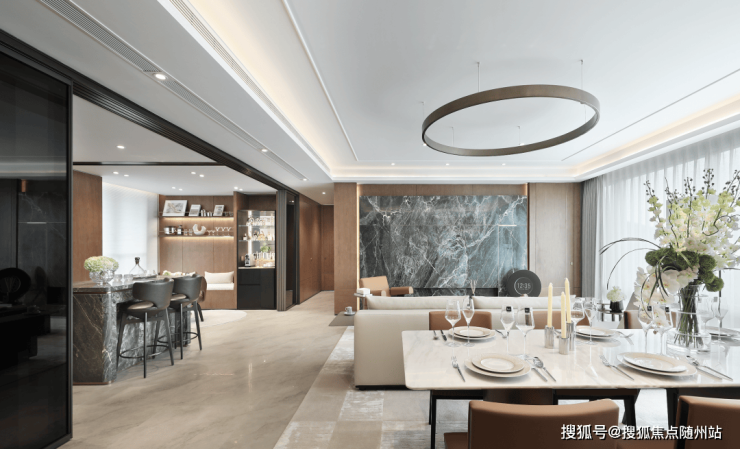 项目建筑设计邀请了九米建筑设计院量身定制,立面风格采用经典锦庐系公建化立面,四面铝板搭配大面积玻璃,封包阳台,整体精致通透,底层以浅色天然石材为主,额外做了圆弧细节,尽显优雅格调。