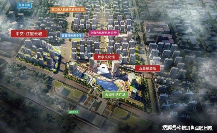 未来社区:作为富阳首个未来社区,致力于打造百万方TOD综合体,将交通、商业、教育、医疗等多种城市功能集于一身。
