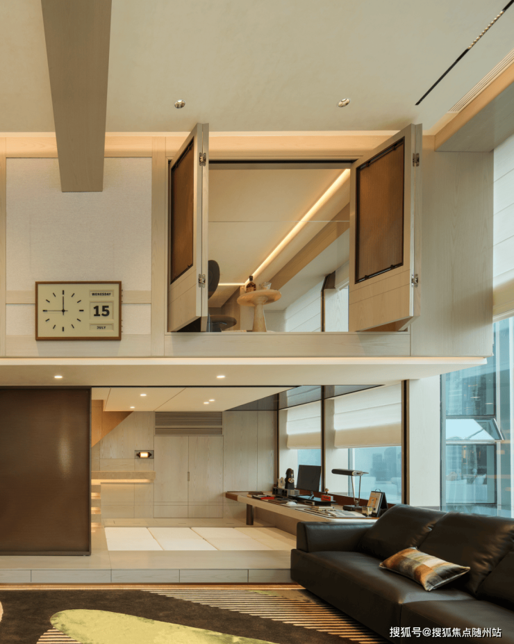 一层,是全然开放的 「全场景SHOW场」。从「情绪玄关」的温柔过渡开始,到「整厅雅聚场」的敞亮空间,这里可以是热闹的家庭影院,或是独自面对江景的一次舒展。「悦己天地」里可以放在一张俯瞰江景的办公桌,也可以成为一间留宿朋友的憩所。而一旁「全能轻飨LAB」 流畅的动线,则让准备简餐或下午茶也变成一件惬意小事。