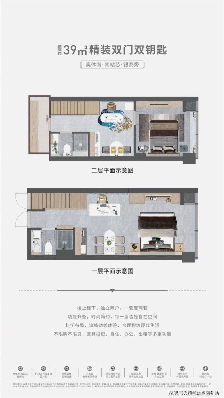精装双门双钥匙,层高约4.5米,买一层享两层,小面积低总价、不限购不限贷,兼具投资、自住、办公、出租、养老多重功能,准现房收益可期。