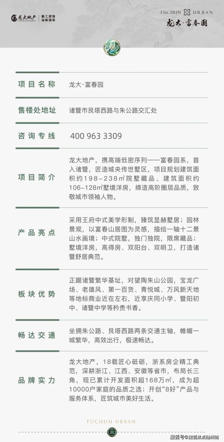 当城市的天际线不断向上生长,人们对「理想栖居」的定义也在悄然升级——不再是单纯的居住空间,而是承载生活质感、圈层共鸣与精神归属的「传世场域」。在诸暨,一座以「低密」为底色、以「中式美学」为灵魂的墅区,正以稀缺姿态重新定义城央居住的高度。它就是龙大地产首入诸暨的高端低密序列——富春园系,匠造的城央传世墅区:龙大·富春园。