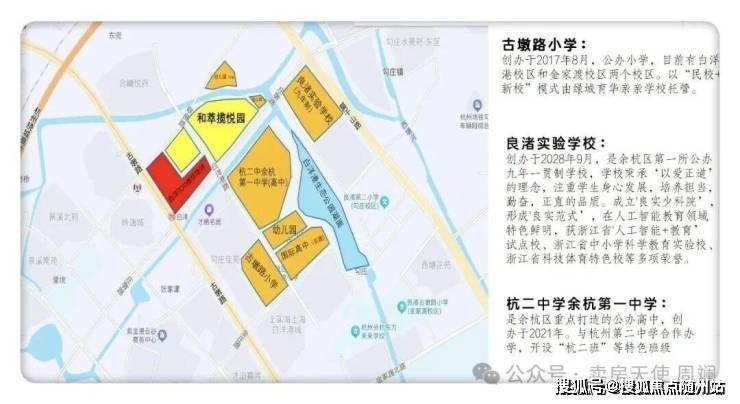 古墩路幼儿园,古墩路小学,杭二中(余杭校区),良渚实验等。(以交付教育部划分为准)