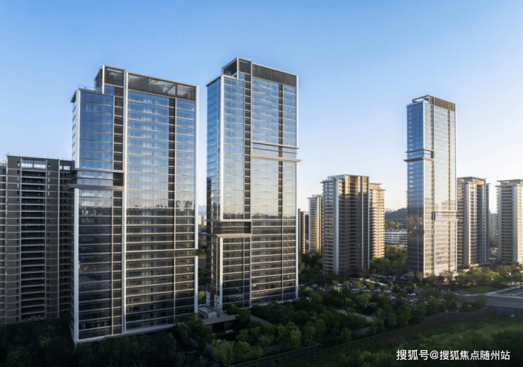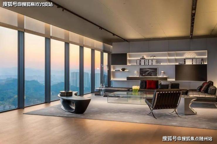 项目总建筑面积约52万方,涵盖高端住宅、大型商业、商务办公等多元业态,其中大平层产品以现代极简主义风格建筑外立面,大面积玻璃幕墙搭配金属线条,在阳光下熠熠生辉,成为区域内的标志性建筑。