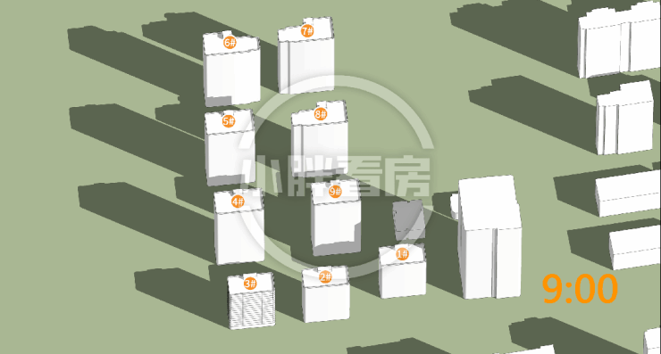 冬季:3#中低层受遮挡。就具体遮挡时间而言,3#主要在上午和中午受南边住宅遮挡。