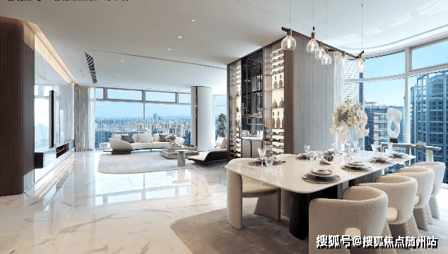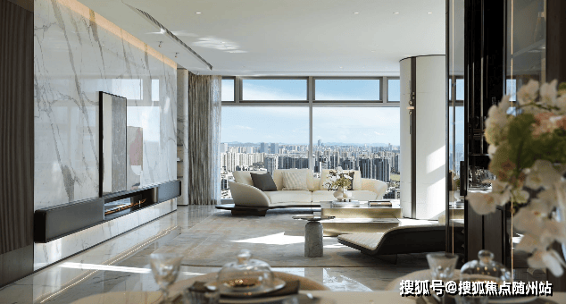 空间设计:采用可移动隔墙系统,实现200㎡会客厅的多功能转换。24米南向落地窗配合Low-E三银玻璃智能调光系统。