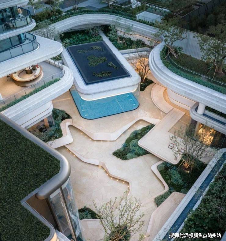 杭州住宅项目里首个270°视野的恒温景观泳池。这个泳池位于园区C位,以45°探入庭院,并以弧形落地玻璃窗隔断,向着光的方向,游着游着,就仿佛游到了花园中。