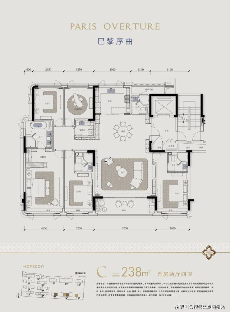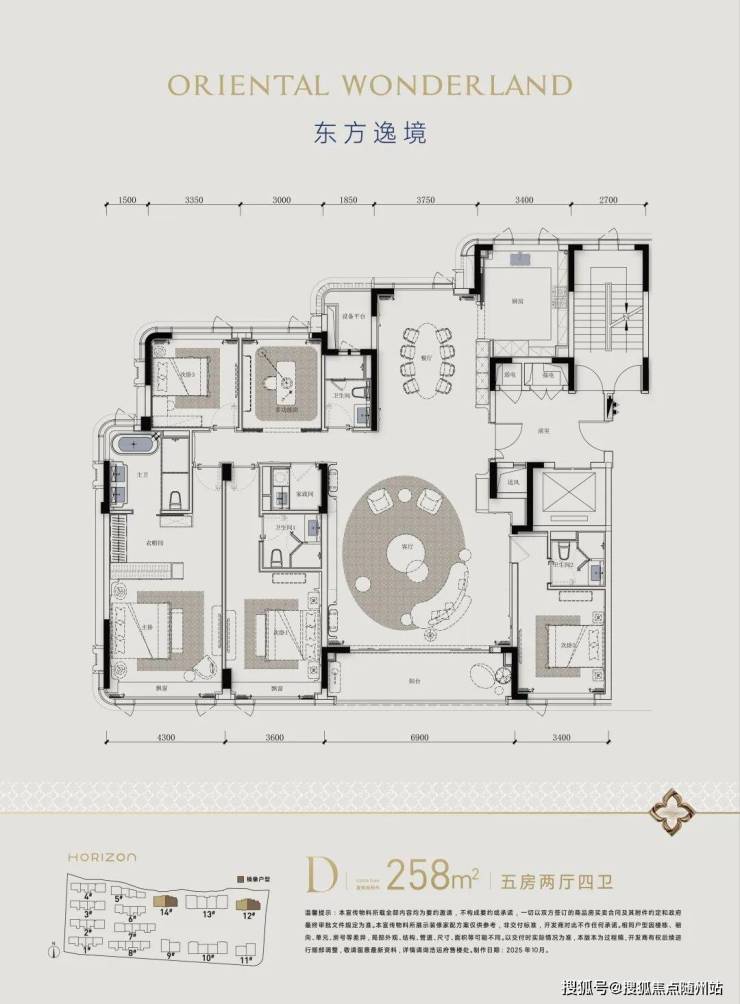 浩运府高层户型共三款:建面约218㎡、238㎡、258㎡