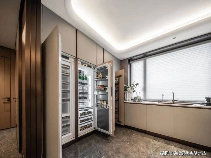将客厅、餐厅、中西厨以及灵动吧台连成一体,且更有操作台面、厨电配置、收纳等内容的多维度升级。