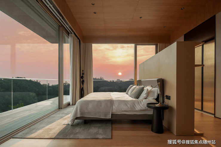 为了实现与山景的无界相融,整个横厅,只用了6幅落地大玻璃,只有这样不吝投入的设计,无敌的山景才能够真正绵延为合山境的自然画框,契合更广博的胸襟。