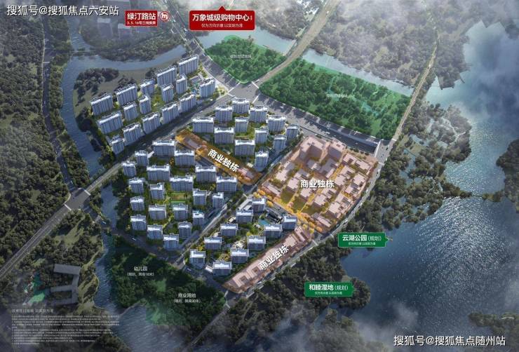 产城湖三位一体格局。项目北侧直线约400米处是在建的约17万方万象城级购物中心,东侧紧邻规划中的云湖公园,西侧接壤万亩生态湿地,形成了独特的产城湖三位一体格局。这种规划布局既享受了城市繁华配套,又保留了自然的静谧与优美,实现了商务与生态的完美平衡。