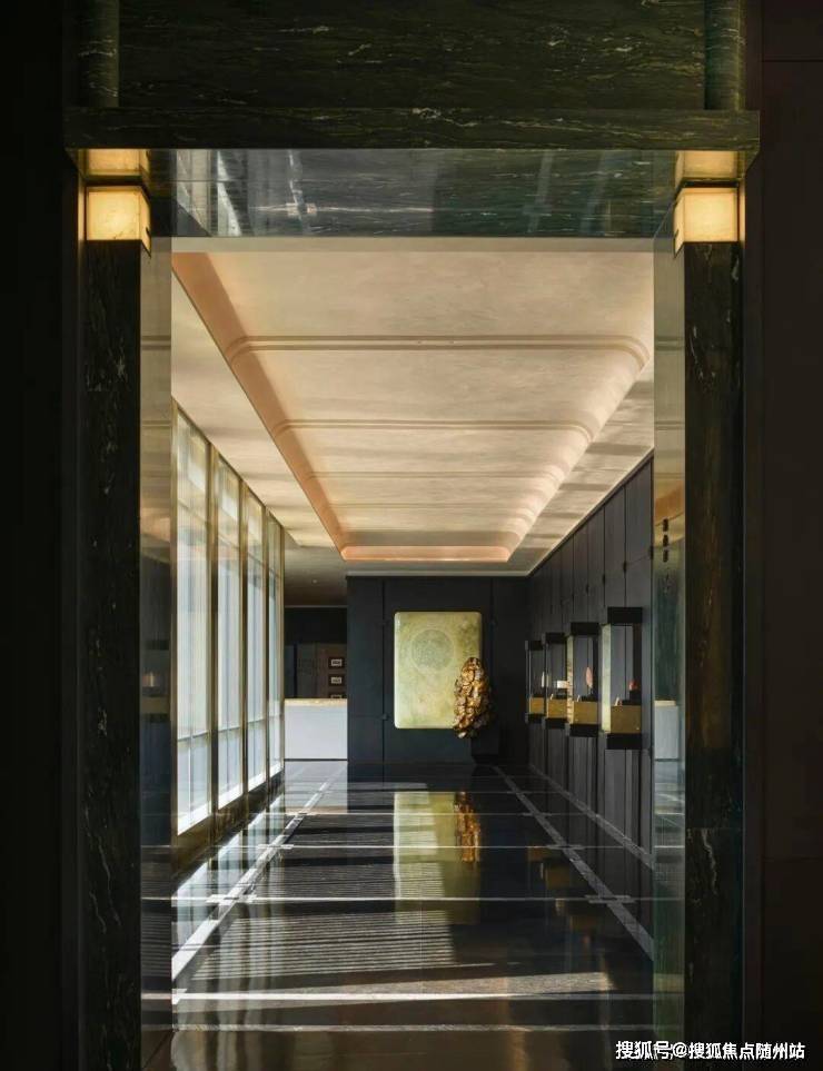 外立面采用四面铝板+巨幅玻璃窗墙的组合,主入口设计极具仪式感,约60米宽的门庭、百年罗汉松、融合良渚玉琮与西湖水韵的纹样。园林设计撷取南宋《四景山水图》意境,营造“一轴八境”
