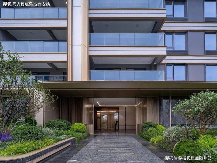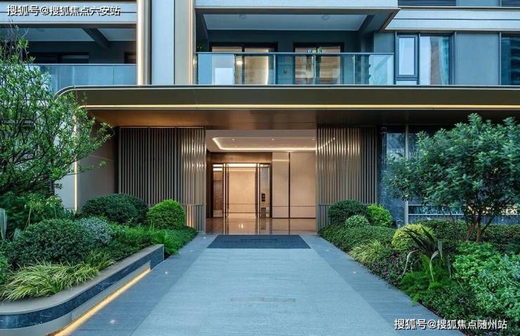 奢雅的酒店式社区大门搭配洄游式落客区,尊贵的归家仪式感拉满;就连楼栋入户门头都采用了铝板和石材,结合格栅点缀细节,质感满满。