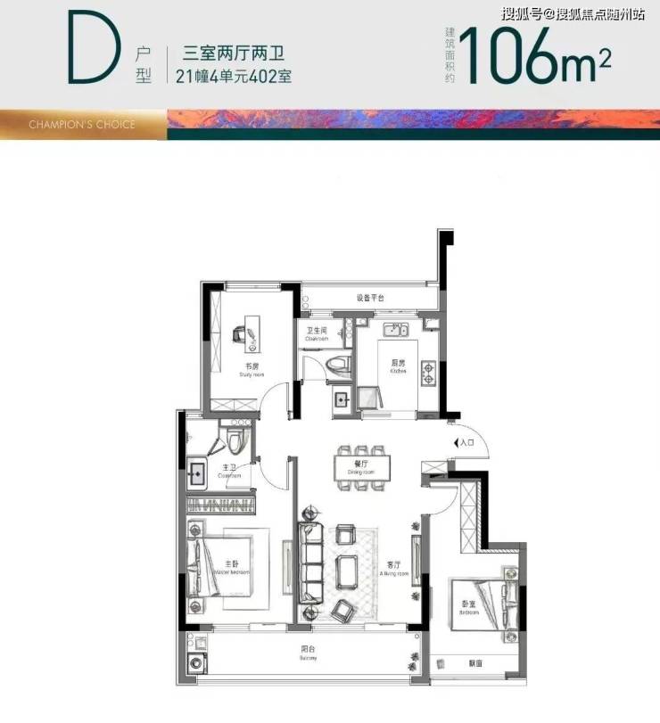 低密大盘的第一个红利,自然是夸张的得房率:据第三方测算,入门的约106㎡实用率就有85%,空间感媲美很多120方左右高层项目。