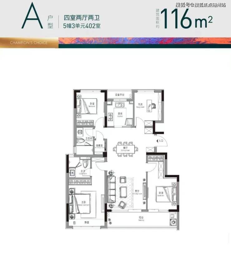 其他约116方、约129方和约152方的四房户型,实际使用率都在92%以上,全部都自带一个独立储藏间。