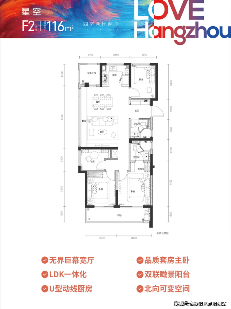 约6米宽景阳台衔接LDK一体化空间,书房可变儿童房,满足成长型家庭需求;🔻售楼热线:☎ 400 832 8823「售楼处」☎〢网上售楼中心〢🔻