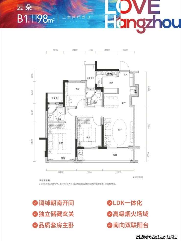 建面约98㎡进阶三房