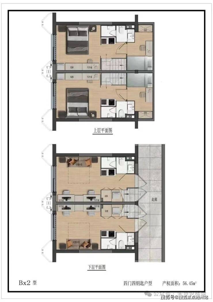 少量稀缺:56.45㎡四门四钥匙六房、57.71㎡四钥匙四房(独立空间,多场景使用);