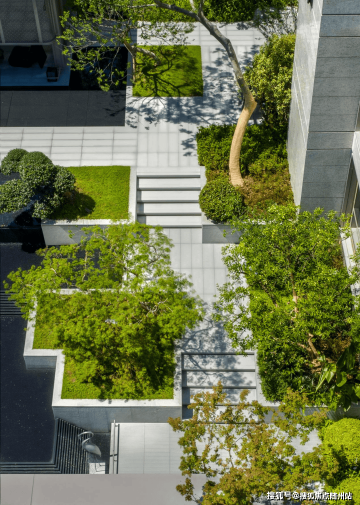 邀请景观大师宋淑华执笔,以“观水迎宾、山水雅庭、清音叠瀑、寻溪山径、庭院深深”五重礼序,打造中央水景中轴与宅间花园,栽种18棵罗汉松等名贵植被,寓意家业长青。