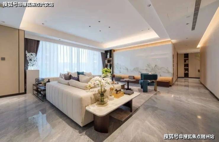 南向总面宽达到了24米!其中的会客空间,南向面宽就有约9.6米,面积约65㎡,还拥有270°转角采光的落地玻璃窗,
