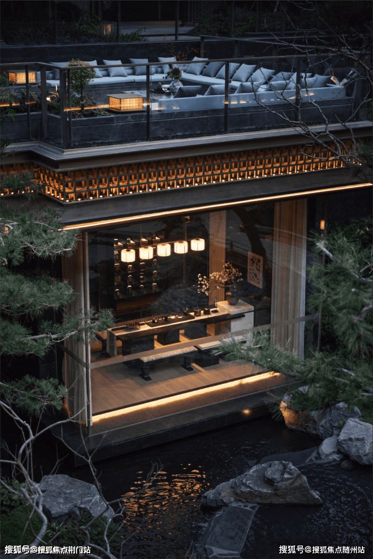 从大门入园,以石柱堆叠而成的假山为第一进小院主景;进入首层主庭院,设计以水作为游览的主要线索,通过曲折路径、廊桥串联整个空间。由南至北,庭院由次至主,氛围由静至动。沿石阶登上假山,山上有小亭,此为最高处可远眺湘湖碧波。 一掩一敞,一静一动,一主一次,构成了静观山水与漫游园林的立体游览意境。售楼热线:☎ 400 832 8823「售楼处」☎〢🔻已认证〢◆🔻