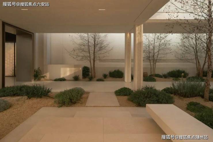 视觉体验:项目采用米白色莱姆石镶嵌超大玻璃作为建筑主体,搭配低饱和度的石材和旱岩植物,营造出一种纯净而又不失现代感的视觉效果。这种设计不仅让人联想到地中海的湛蓝海水和洁白沙滩,还赋予了社区一种独特的艺术气质。
