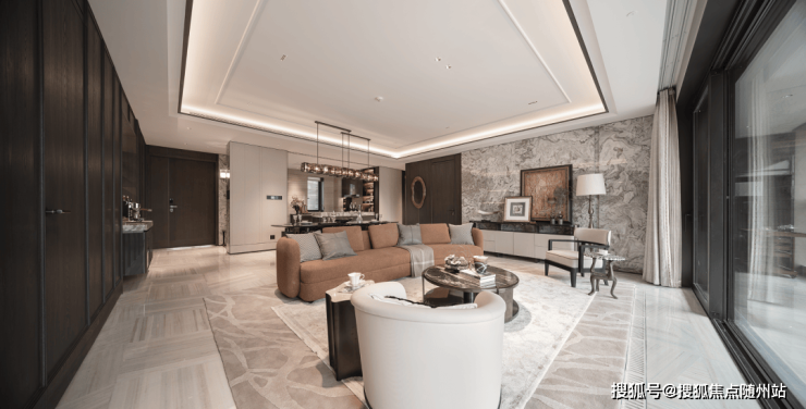 最令人惊艳的是约 43㎡洄游式豪华主卧,面积堪比普通住宅的 3 个房间,且采用 “衣帽区、卫生间、卧室”三分区独立设计。
