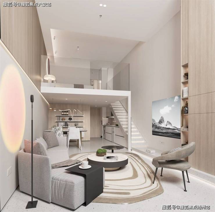 空间灵活:双层挑高设计,可自由分隔为“一层办公+一层居住”或“客厅+卧室+书房”等多元功能区,满足单身贵族、新婚夫妻、小家庭等不同客群的生活场景。