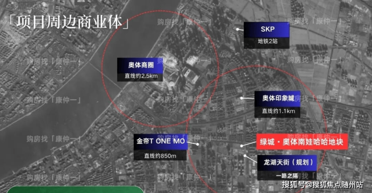 项目北侧1.1km为奥体印象城,包含山姆会员店、muji等主力店;南面约1.7km为萧山宝龙广场,与奥体印象城,形成“双核驱动”,满足小区业主日常所需;