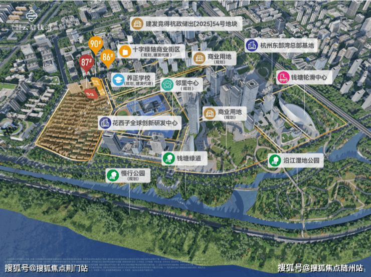 新地块与云启钱湾连成片,是钱塘区重点打造区块。作为城市共建的深度参与者,建发以前瞻性战略眼光布局于此,在东部湾新城这片热土上,将打造一座“江湾生活之城”。