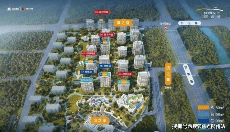 滨杭滨纷城由滨江集团联手杭州地铁共同打造,是滨江旗下的第一个TOD综合体。整个项目体量宏大,总建筑面积达到63万平方米,融合了居住、公园、商业、办公、学校5大业态,规划打造公园、商业、邻里中心、双幼儿园、九年一贯制学校等复合内容。
