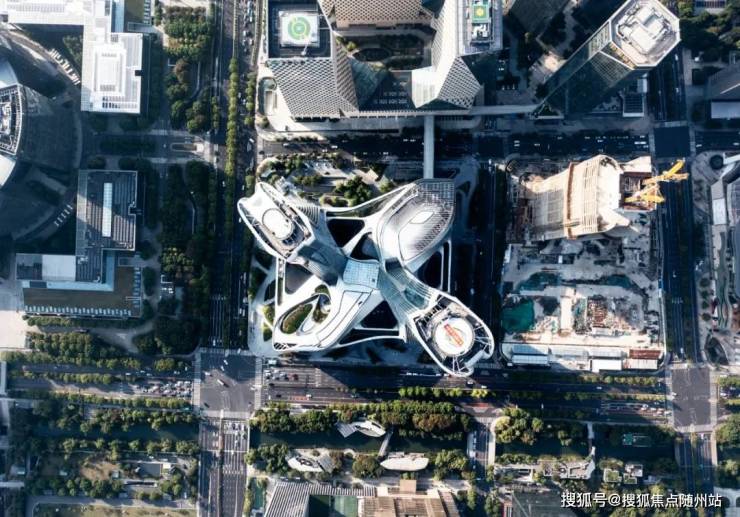 在合玺·钱江,没有标准化产品,亦无标准层。斜粱自中心旋转辐射,斜柱随着楼层旋转,玻璃幕墙随建筑形态演变……