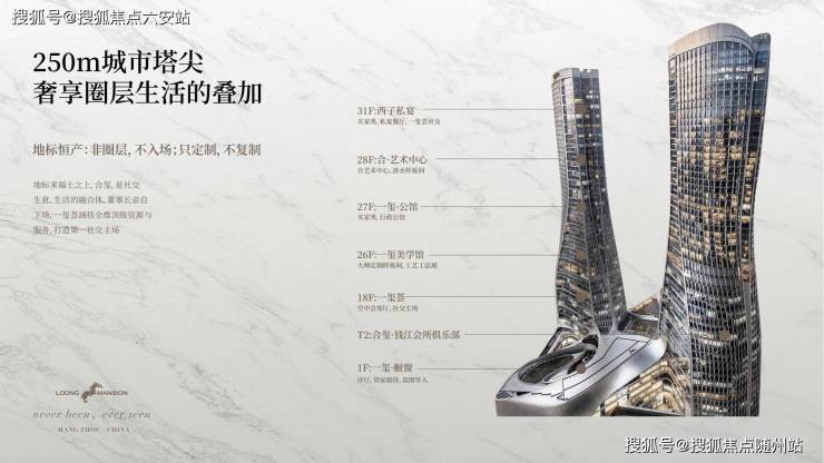 由奢邸缔造者李玮珉亲自操刀设计,以全球视野、前瞻性的设计理念,和艺术性与功能性兼具的美学思维,为新的钱塘江时代,原创一种家族式兼具商务性质的作品。