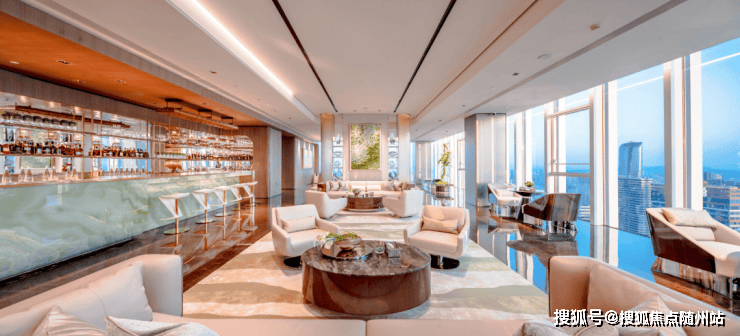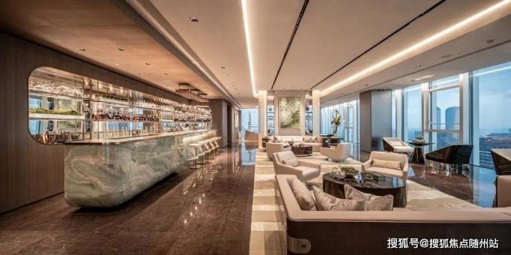 IOC在51层耗资1个亿,损失了可售面积去打造云端会所,包含会客厅、行政酒廊、茶室、雪茄吧、私宴厅、沙龙6大功能,5楼会所还有泳池、健身、SPA、影院,甚至还做了屋顶花园。