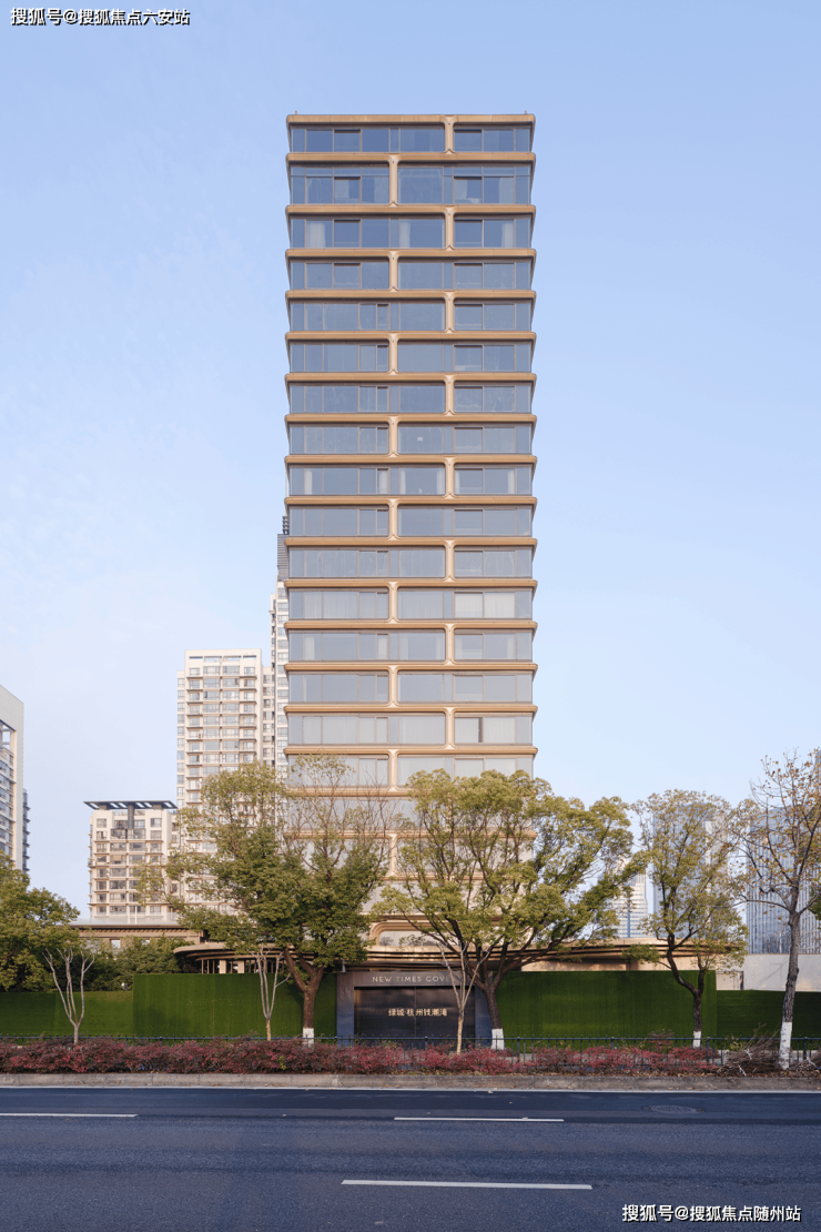 项目由亚洲建筑师协会金奖得主孟凡浩主持设计,以“钱塘江潮涌”为灵感,外立面采用金色铝板曲面线条与四层中空LOW-E玻璃幕墙结合,模拟潮水流动的韵律感。