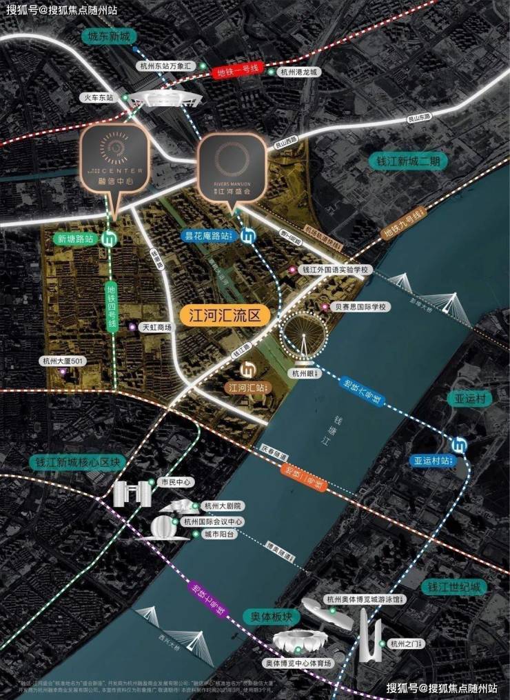 区域核心:融信中心落子杭州钱新2.0,连接钱江新城、武林、城东三大核心CBD;