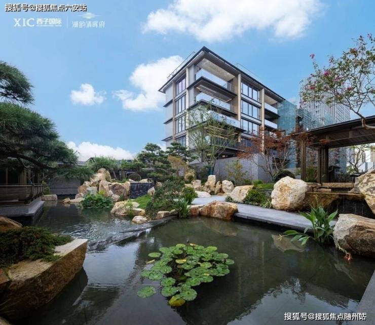 园林是湖韵清晖府的又一亮点。项目邀请GTS团队宋淑华执笔园林设计,以“一轴两苑八景”为框架,打造立体流动的园林空间。设计灵感来源于《千里江山图》,通过“五进式”礼序空间,再现江南园林的意境之美。从入口处的“松之王”黑松迎宾,到穿过约25米长的巨峰飞瀑,每一步皆景。