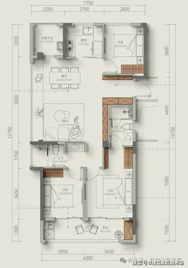 建面约110㎡【B绘影】户型,为三室两厅两卫。【强收纳户型】多处柜体设计,收纳多出一间房;【独立式玄关】入户双侧收纳,实用性「翻倍」增长;【漫游式方厅】约29㎡空间,自由探索生活的边界;【治愈系阳台】约6.3m双联阳台,捕捉灵感治愈生活;【解压式主卧】轻奢套房搭配步入式衣帽间,彰显舒适尊崇。