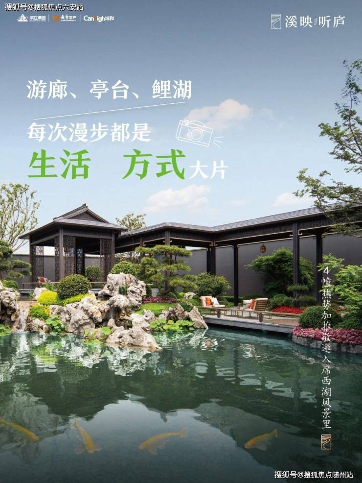 游廊、亭台间,感受移步异景之妙,鲤湖中锦鲤漫游,喜福常伴,更有水归堂庭院,汇流财气福运