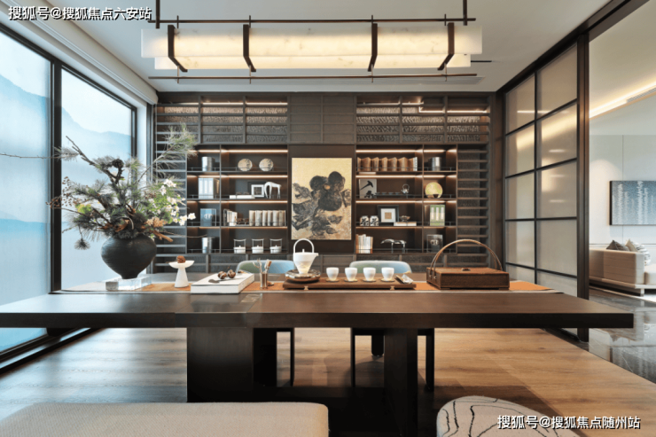 作为归家的第一道心境转换,“四水归堂”庭院以东方禅意迎接家人。天光檐影下,景石静卧水面,构成一幅微缩山水画,让每一次经过都成为踏入画境的体验,迅速洗去外界喧嚣,引领心神归于宁静与安和。