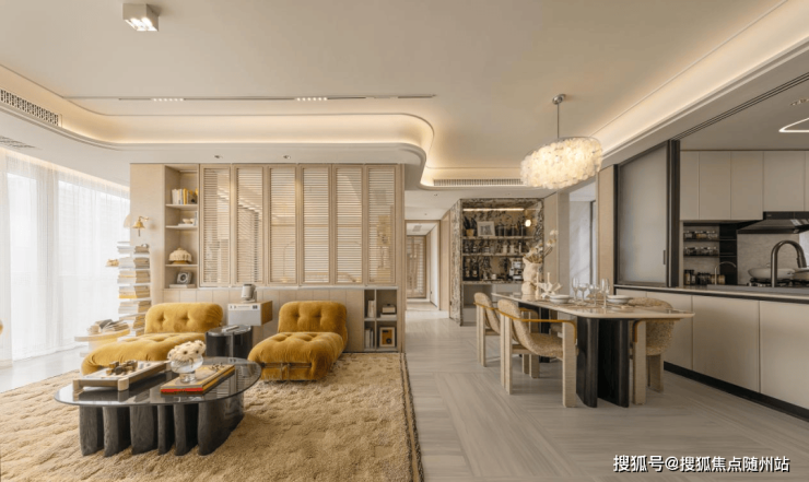 在这个开放而有序的空间里,妈妈在厨房准备晚餐时,抬眼便能看见孩子在客厅专心涂鸦;爸爸在餐厅翻阅杂志时,与家人的视线自然交织却互不干扰。这种既独立又联通的空间关系,让家庭成员之间的互动更加自然而亲密。