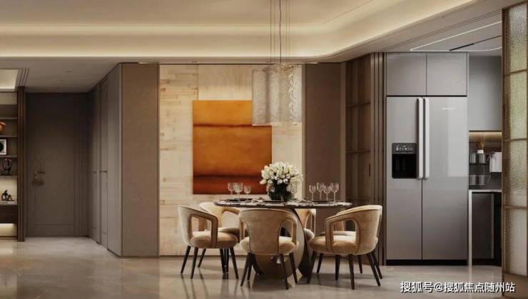 圆桌,作为中国人骨子里的情感符号,它意味着团圆、对话与无死角的交流。在这个能够从容摆放圆桌的餐厅里,每一餐都成为家人团聚的美好时刻,每一次交谈都因空间的包容而更加深入。
