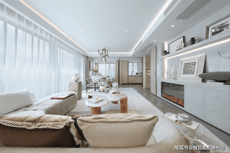 前瞻未来进阶生活所需,将品牌新风、地暖、中央空调、全屋智能系统一站配齐,给予家人更臻心的生活守护;三玻两腔玻璃的运用(部分),让室内更安静,让视界更加明净通透。